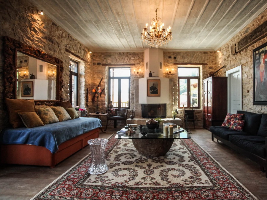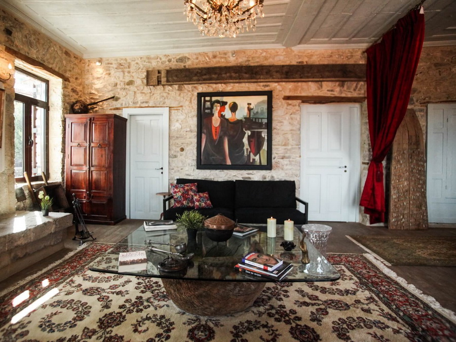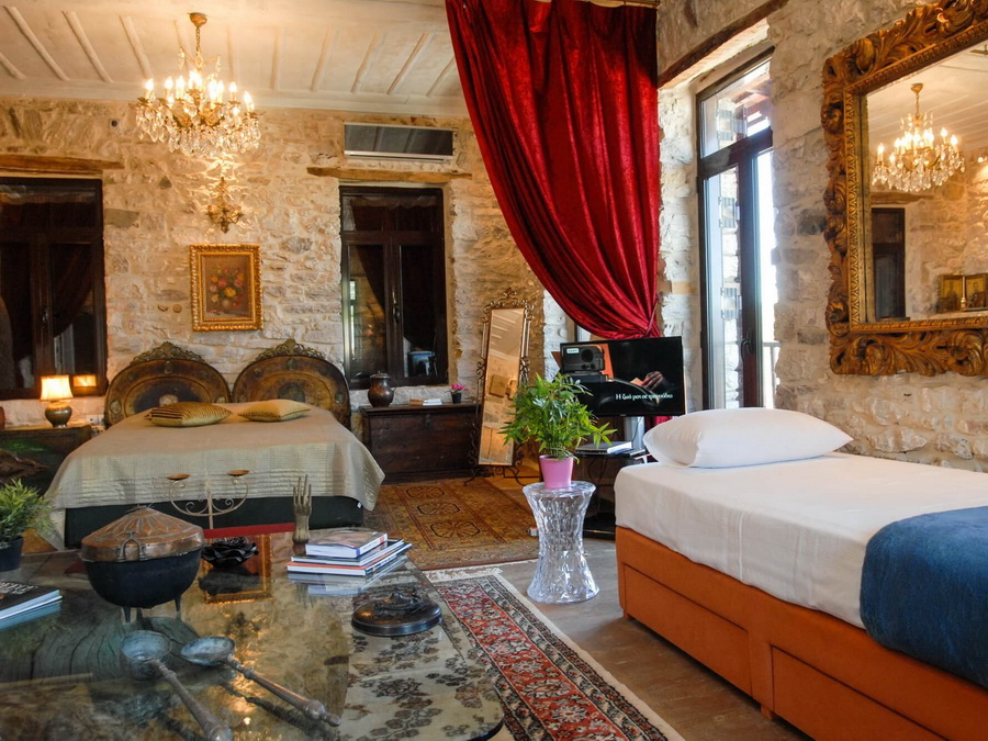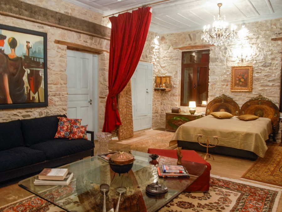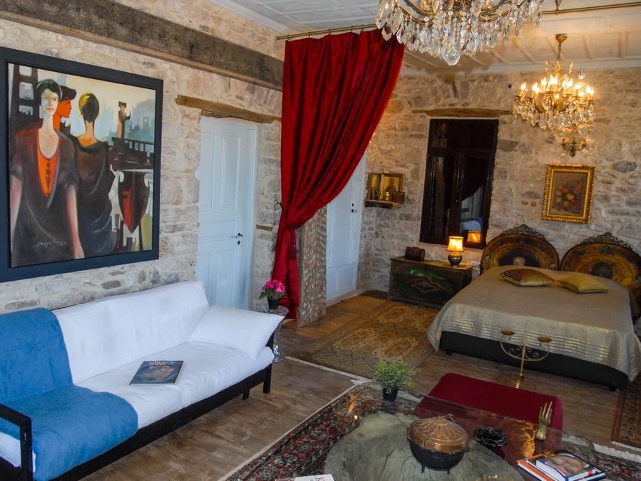 Εδω δείτε ενδεικτικές φωτογραφίες της Σουίτας Β Ορόφου, από την πέτρινη παραδοσιακή κατοικία Marguerite à Estranses στη Δάφνη, Καλαβρύτων.